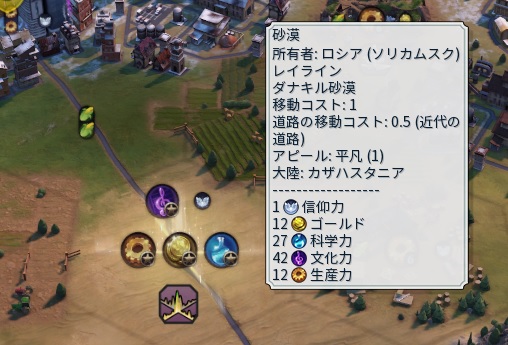 レイライン自体も隣接ボーナスが高いとは言えず、戦略資源と同じく該当タイルに区域を置けなくなってしまいます。