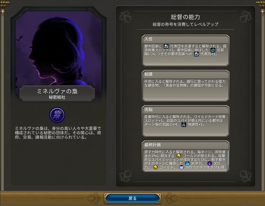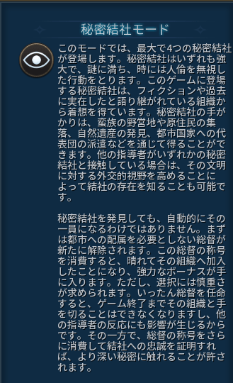ミネルヴァや緋の同盟はCiv6に慣れた人なら虚無が取れない場合でも十分AIに立ち向かえる可能性を秘めた結社という感じです。