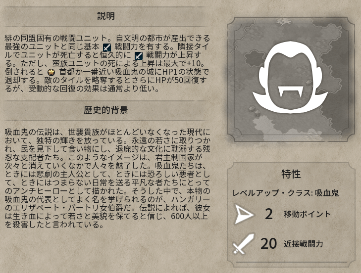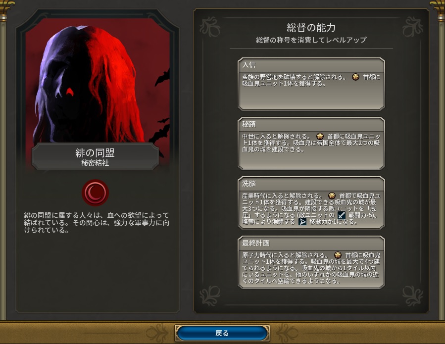 吸血鬼の優位によって他文明を叩きのめすというよりは他文明の優位を吸血鬼と生産力で埋める結社でしょう。