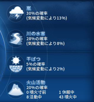 災害が頻発するという事は、裏を返せば被害タイルが分かりやすい氾濫や噴火は修復の手間はあるもののタイル強化として優秀です。