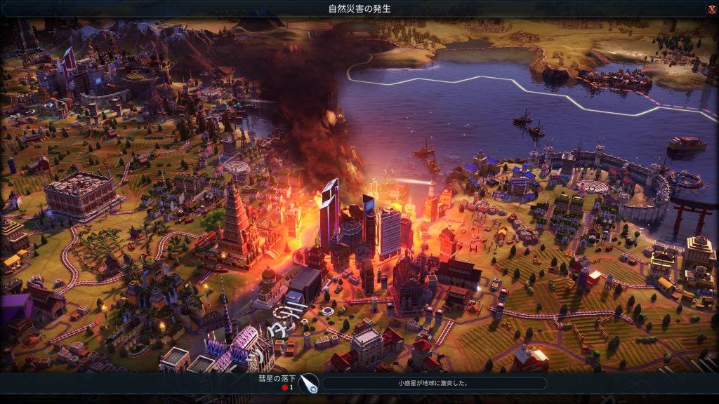 戦争中であれば敵国でも災害を起こせるため、AIが氾濫原や火山の近くに都市を置いている場合は都市防壁に大ダメージを狙う事は可能だと思います。