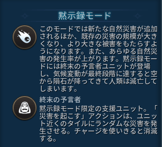 読んでの通り常にプレイヤーは災害に晒されるとんでもないモードです。