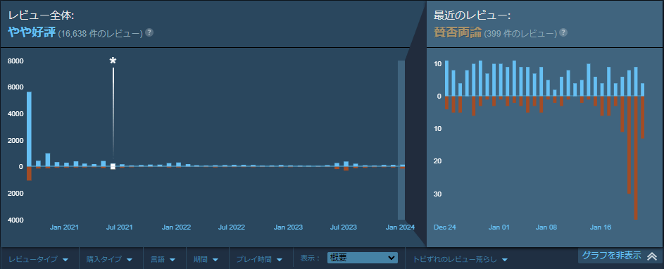 ゲームとしては多分アーリー価格分くらいの元は取っているし、パルワールドで(これだけヒットしたので流石にそんな事はないと思うが)またクラフトピアのような事が起きても同じくユーザー的にはそれなりに元は取れたんじゃないかという反応はありそう。