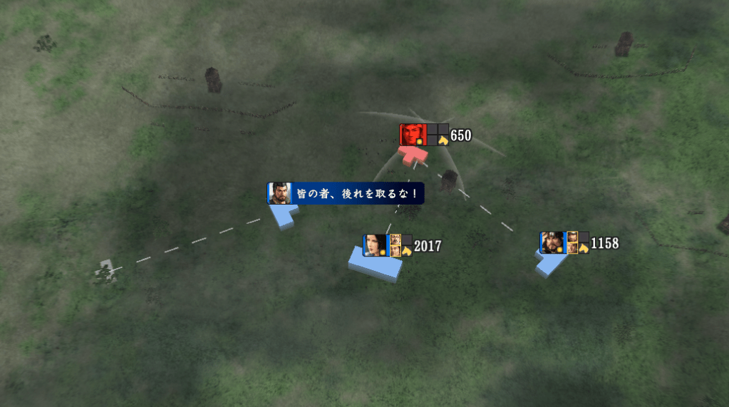 これを防ぐためにも単独である程度戦える精鋭部隊を側面から迂回させて送り込むなどの動かし方をするのが良いと思います。