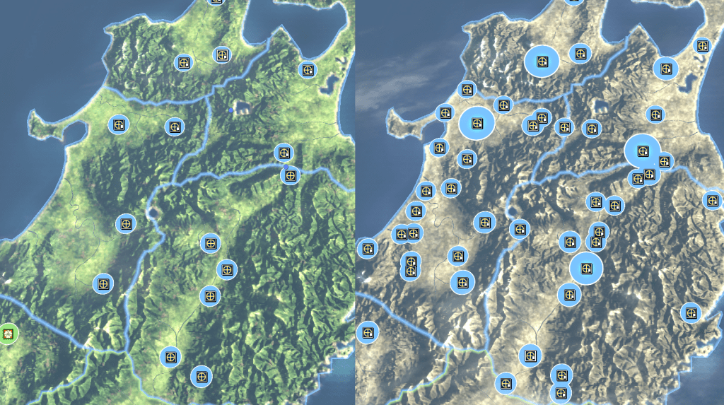……ぶっちゃけ東北や北陸、山陰以外は元からそこそこの密度で城が配置されているので築城を多用するのはこの3地方になると思います。