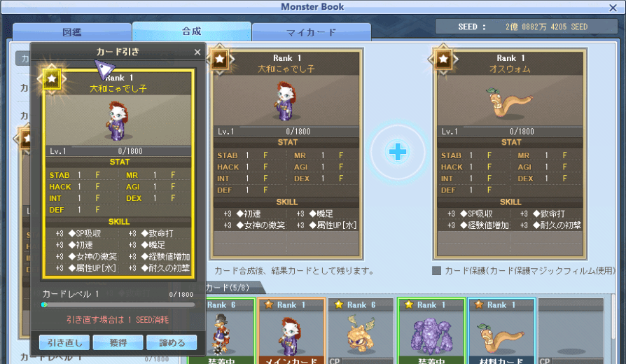 一度流れが分かればRank1カードでの合成は簡単に出来るようになると思います。