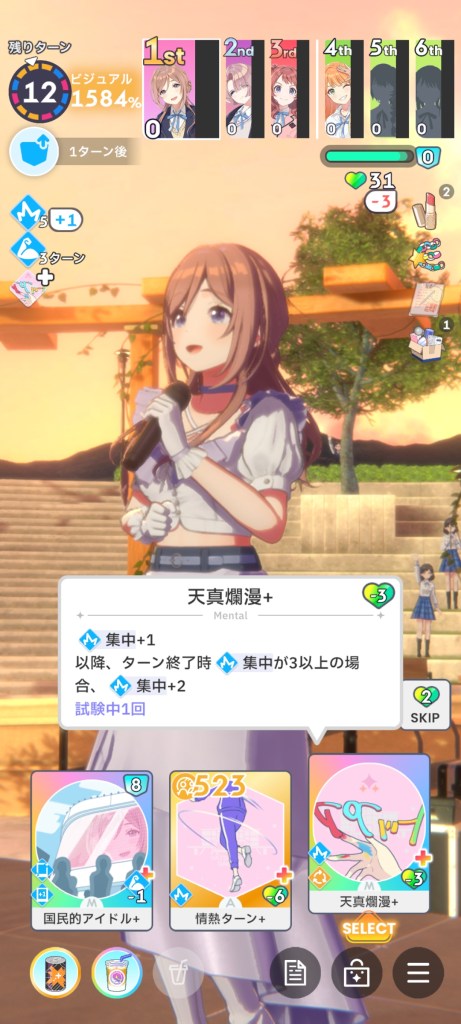 序盤のレッスンが楽勝すぎて、SRですが体感的にはSSRのような感覚で回せました。