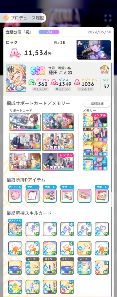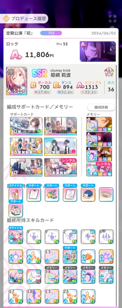 ことねを育てた時と比べるとサポカの質が良くなりましたし、プレイングも上手くなったのでそこが出た気はします。