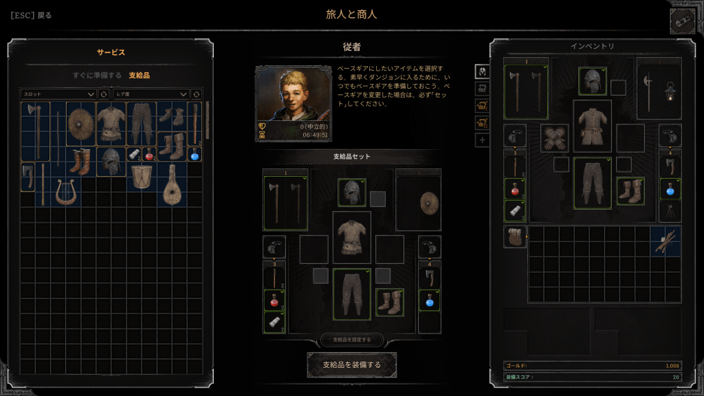 更に従者が追加されていて、こいつは所謂デフォルトの装備セットを用意してくれます。