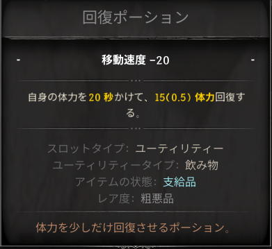 ※ちなみに装備した腰のポーション類は非常に目立つので暗所待機する場合はいっそ外すという手もあります。